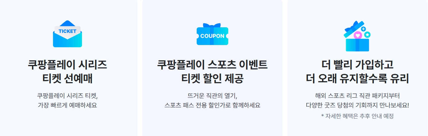 - 쿠팡플레이 시리즈(토트넘, 뉴캐슬 등) 티켓을 일반 예매보다 먼저, 할인된 가격에 구매 가능