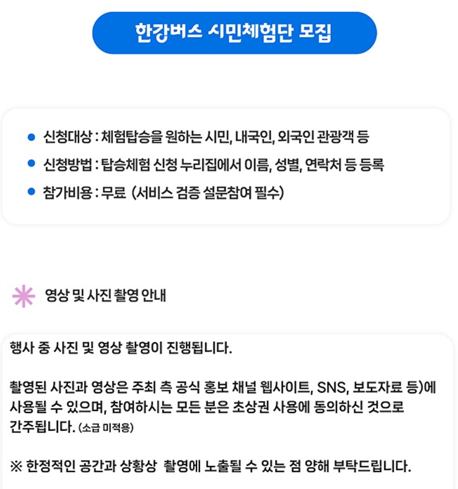- 신청은 https://hangangbus.govent.kr에서 진행돼요.
