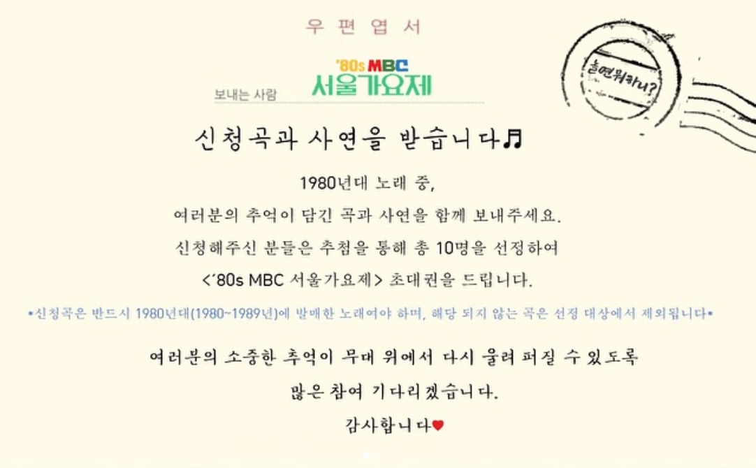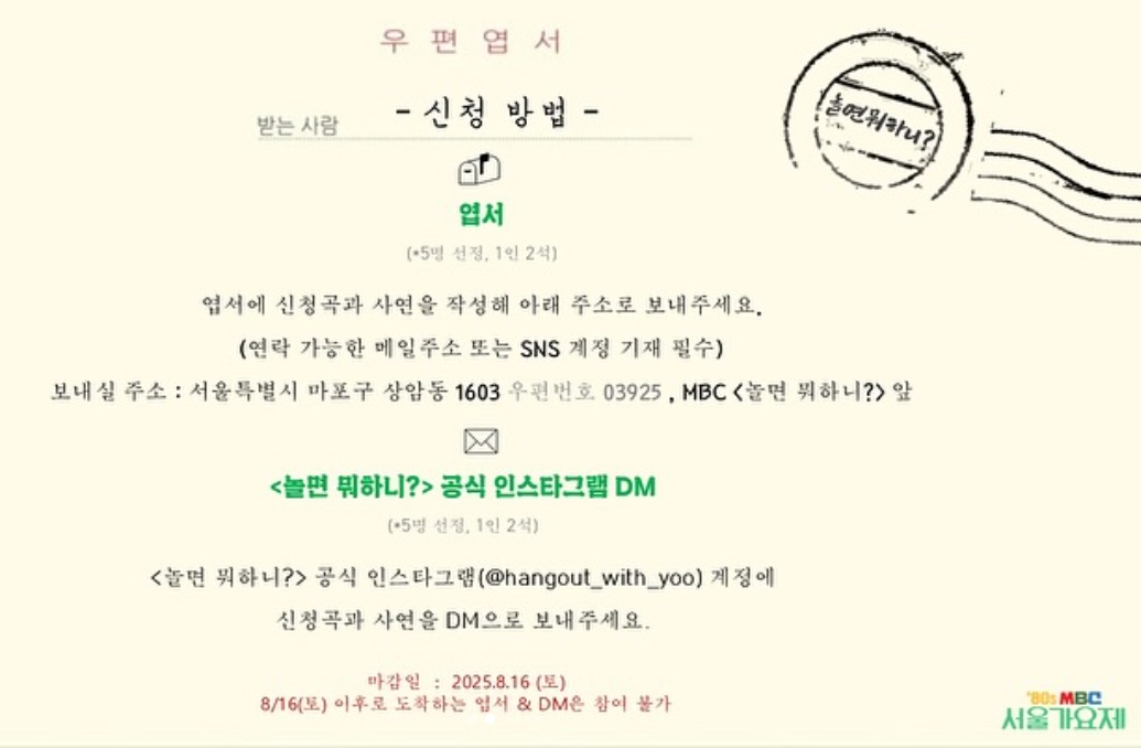 | 놀면 뭐하니 서울가요제 방청 신청! 초대권 응모 (4) | 2025.08.07 |