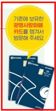 - 구비서류 : 신분증, 신청서(개인정보 제공 동의 및 위임서명), 광명사랑화폐 카드 지참.