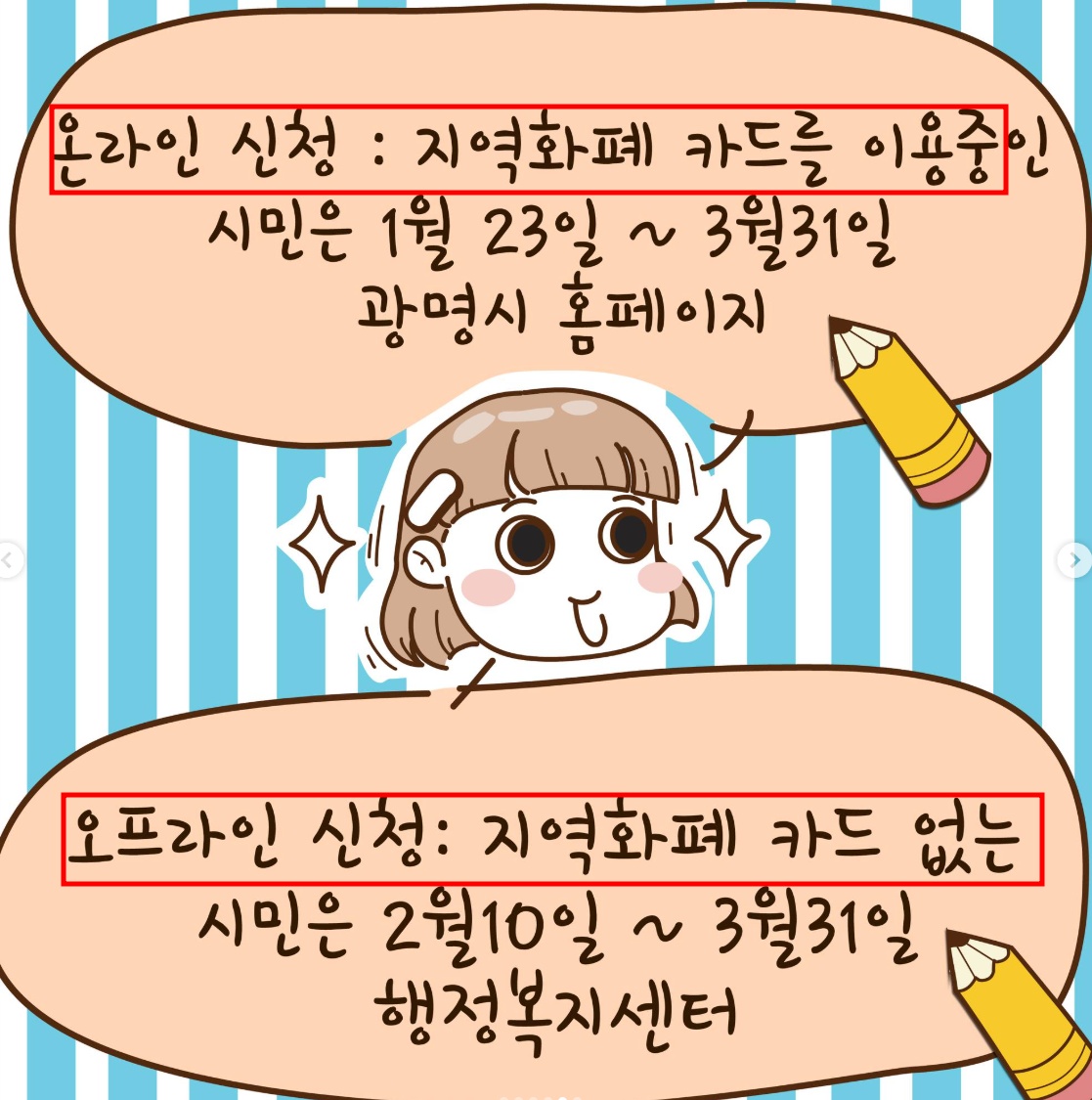 - 지급방법 : 광명사랑화폐카드 충전(1인당 10만원)