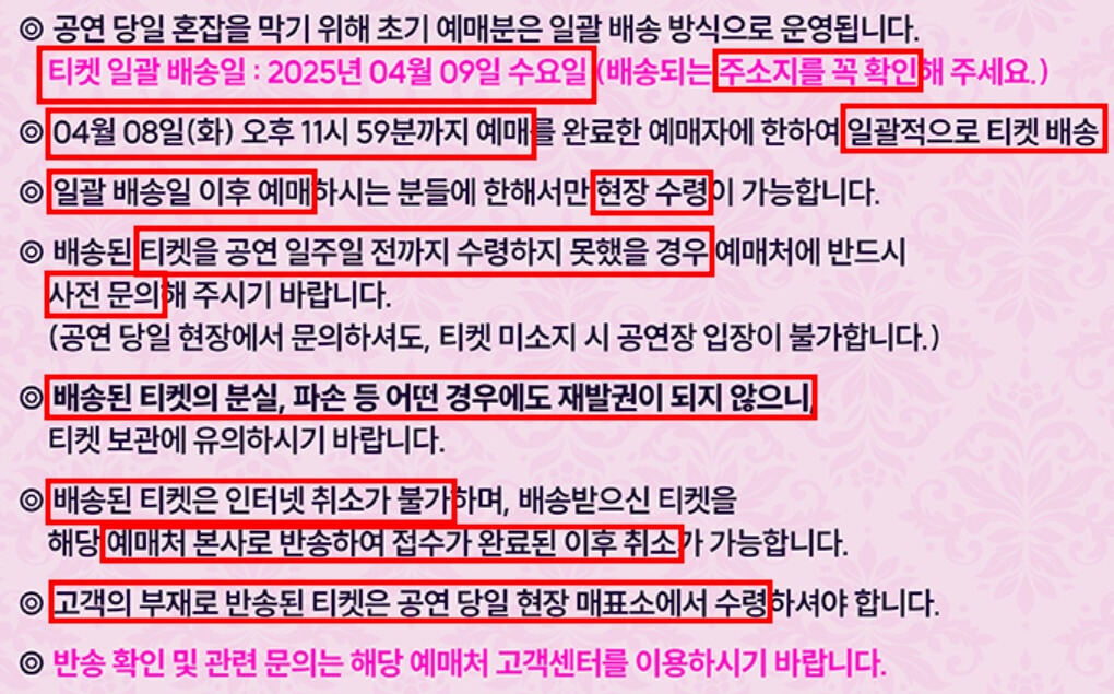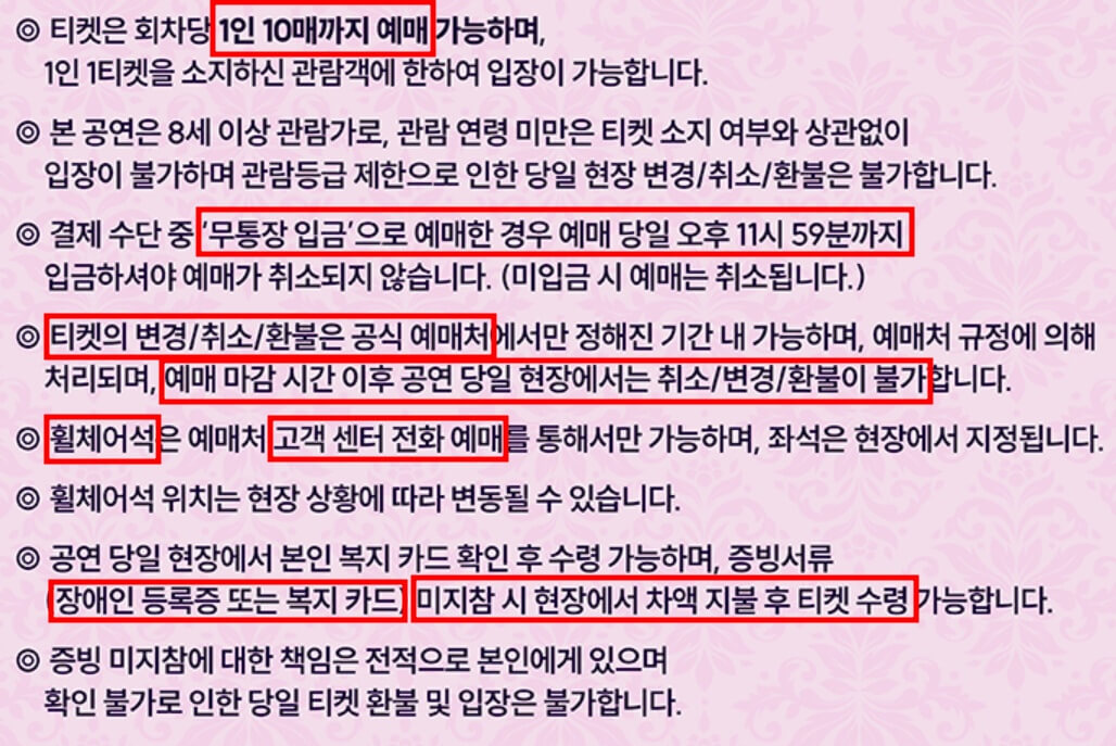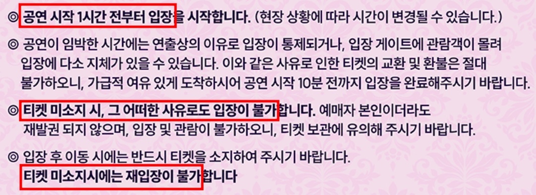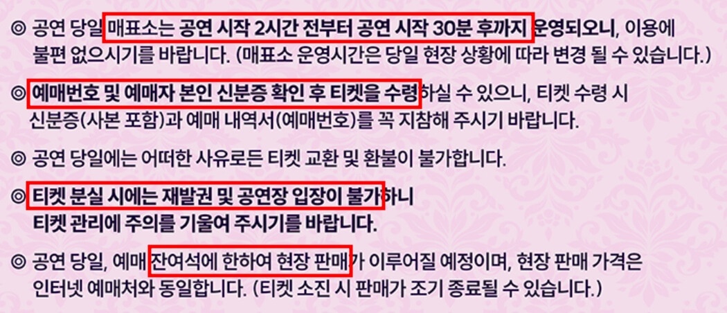 티켓 예매 유의사항