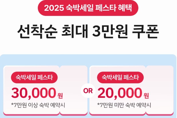 - 7만 원 이상 예약 시 3만 원 할인권