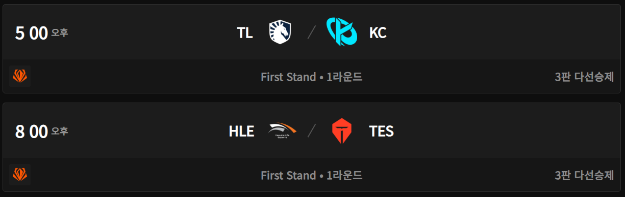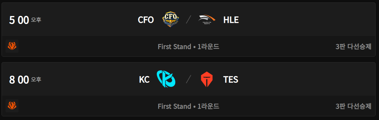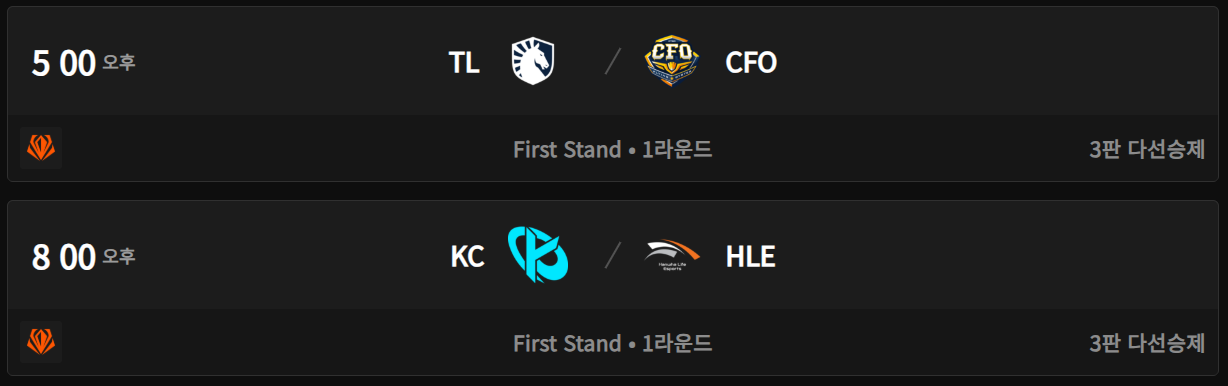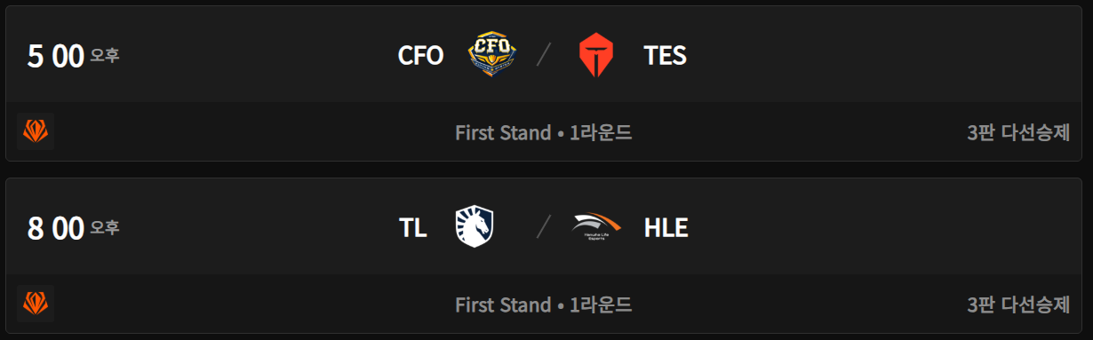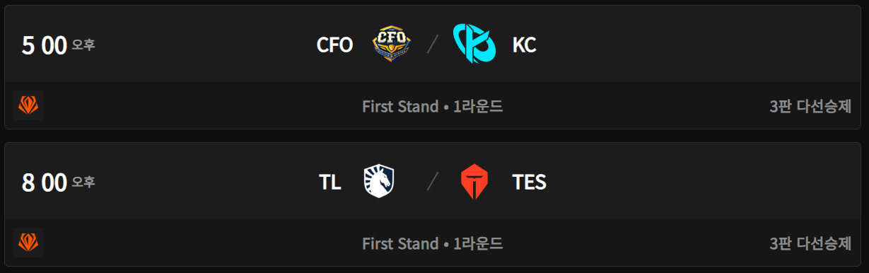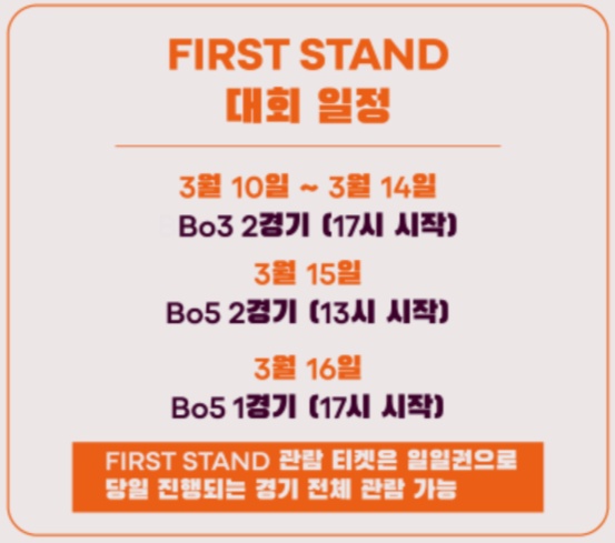 퍼스트 스탠드 우승 시 7월 캐나다에서 열리는 미드 시즌 인비테이셔널(MSI)의 본선 직행 시드권이 제공되기 때문에 더욱 치열한 경기가 예상됩니다. 5개 지역의 첫 번째 스플릿 최상위팀이 경쟁하는 퍼스트 스탠드는 라운드 로빈 스테이지와 토너먼트 스테이지로 진행됩니다.