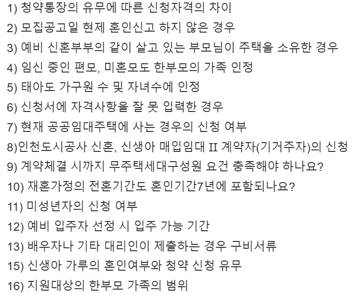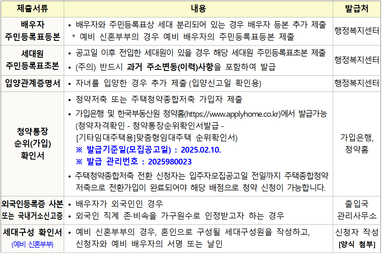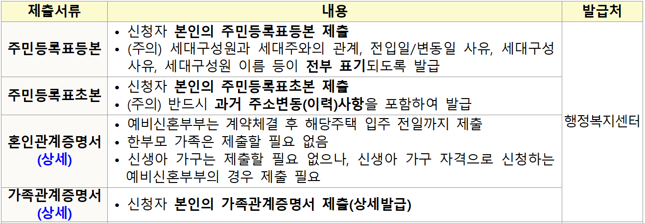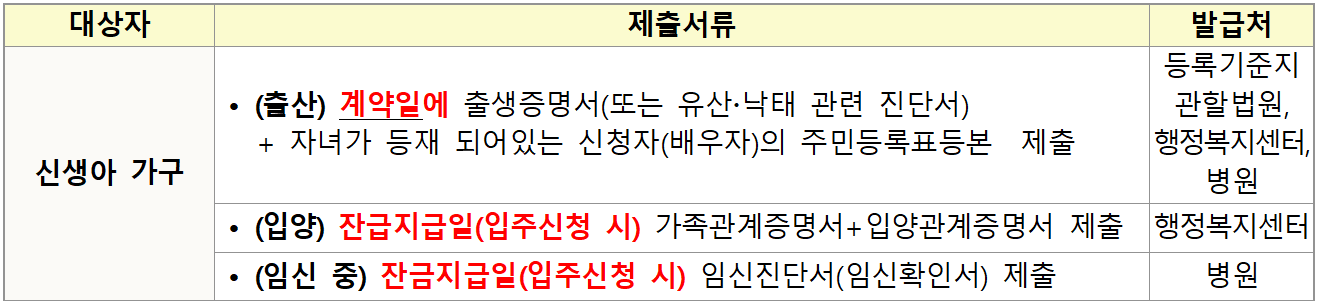 ※ 태아, 입양한 자녀를 인정받아 입주자로 선정된 자가 추가 서류를 제출하지 않거나 임신중절 수술이나 입주 전 파양한 사실이 드러나면 계약이 취소됩니다.