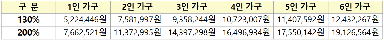 - 1인 가구는 20% p, 2인 가구는 10% p가산 적용한 금액