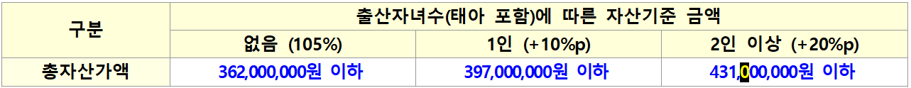 ▶'23. 3. 28 이후 출산(입양, 태아 포함)한 자녀가 있는 경우의 자산기준