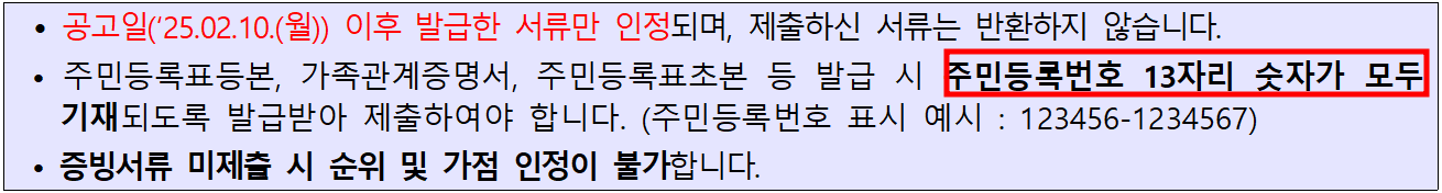 - 증빙서류 미제출 시 순위 및 가점 인정 불가