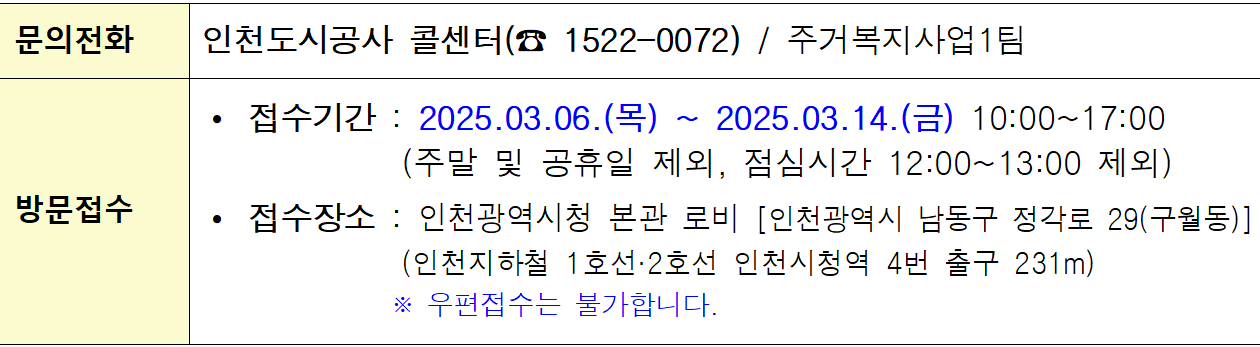 - 접수장소 : 인청시청 본관 로비(인천광역시 남동구 정각로 29) 구월동.