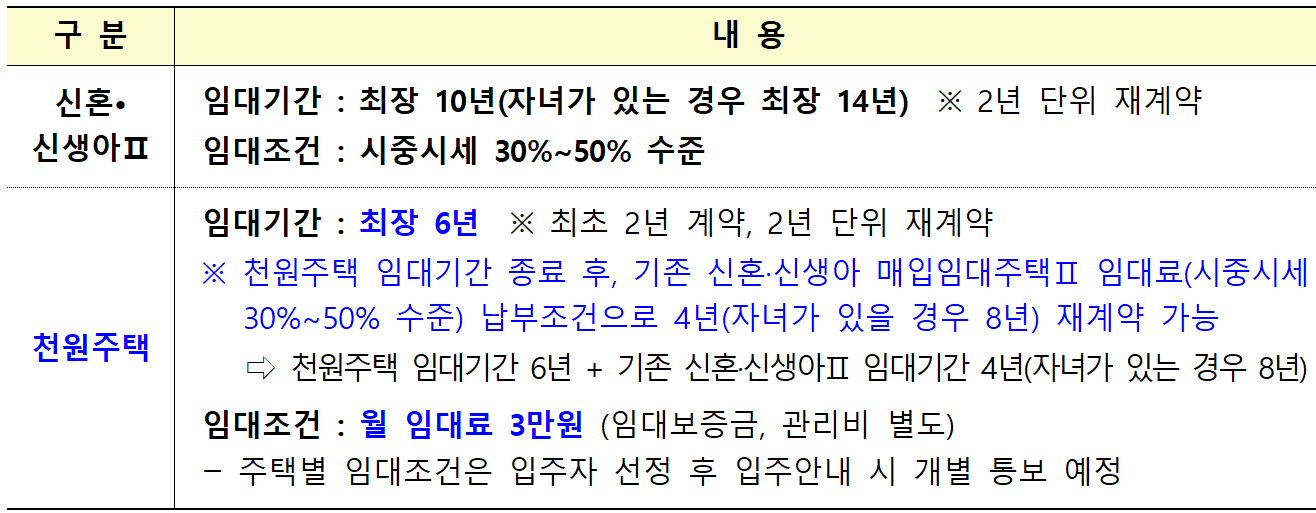 - 공급기간 : 최장 6년(최초 2년, 연장 2회, 2년 단위 재계약)