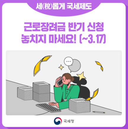 2024년 하반기 근로장려금 반기신청은 2025. 3. 1 ~ 2025. 3. 17까지입니다. 잊지 말고 꼭 신청하세요.