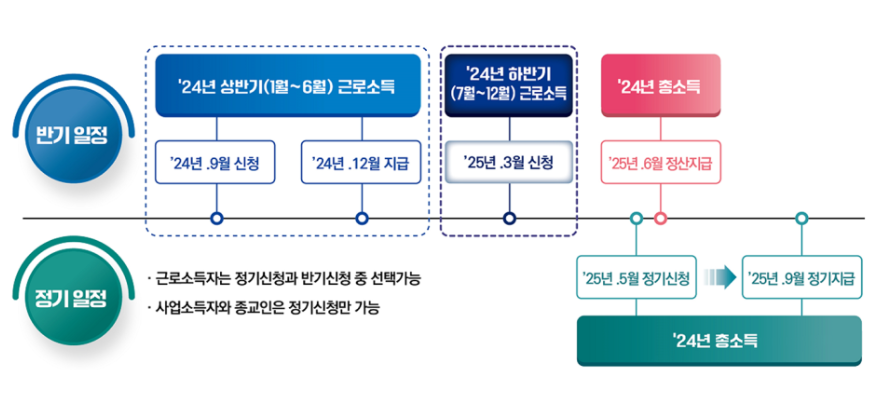 | 2024년 하반기분 | 2025. 3. 1 ~ 3. 17 | 2025년 6월 말 (2) (하반기분 지급, 정산 통합) |