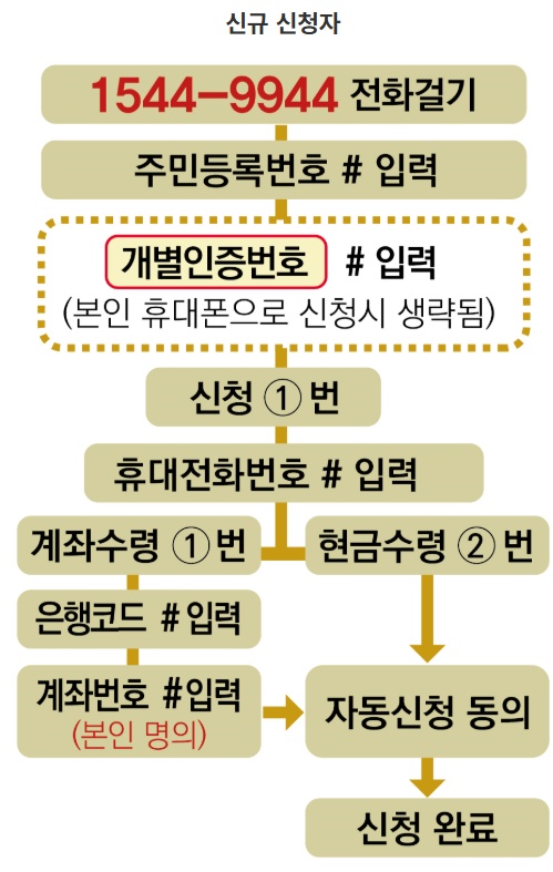 : 신청안내문을 받은 대상자는 안내문에 있는 개별인증번호를 입력하여 아래 순서대로 신청 가능.