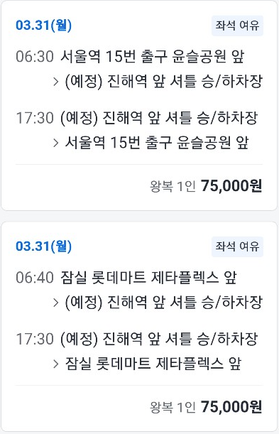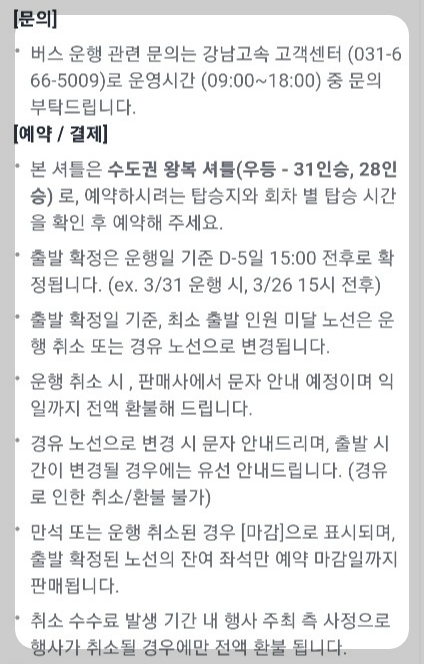 버스 편이 많지 않으니 마감전에 서둘러 예매하시기 바랍니다.