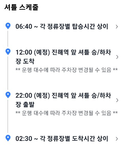 셔틀 스케줄 및 탑승 장소
