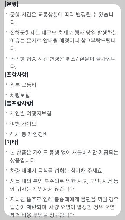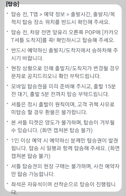 문의, 예약, 결제, 탑승, 취소, 환불 등 셔틀버스 운행에 대한 자세한 내용은 아래 이미지를 참고하세요.