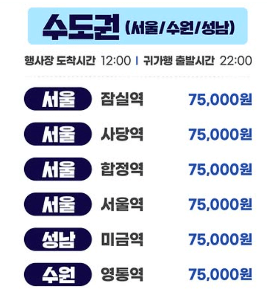 서울·경기 지역별 출발 시간 및 가격