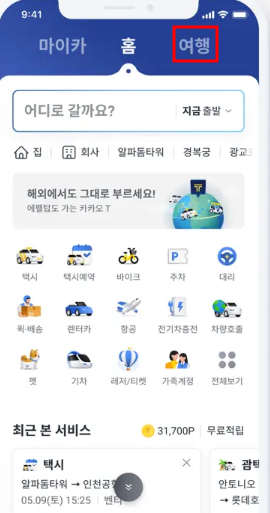 → 첫 화면 상단에 붉은 박스로 체크된 여행을 선택하고