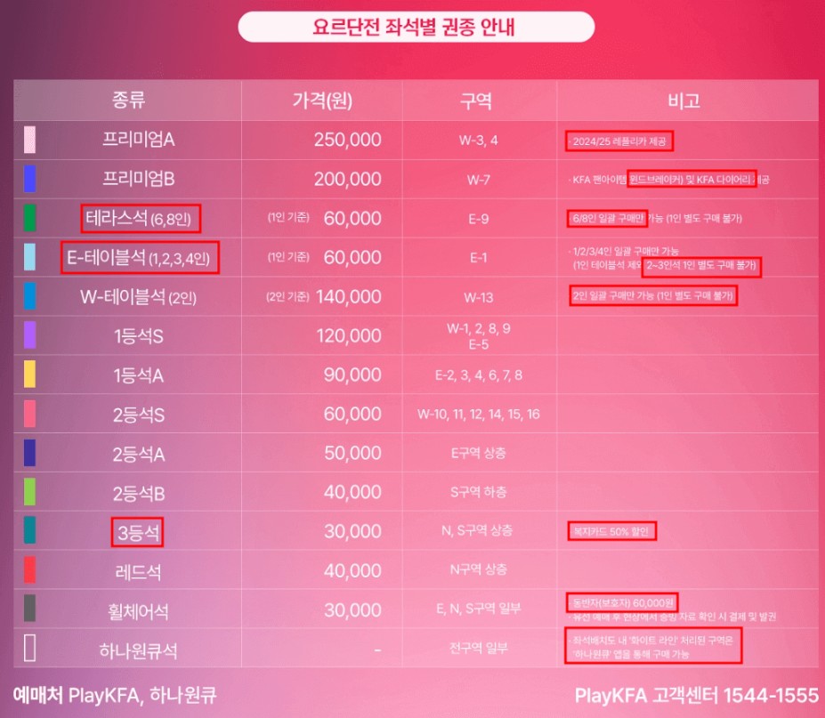 - 티켓 문의 : PlayKFA 고객센터 1544-1555 (운영 시간 : 평일 및 주말(공휴일 포함) 09:00 - 18:00)