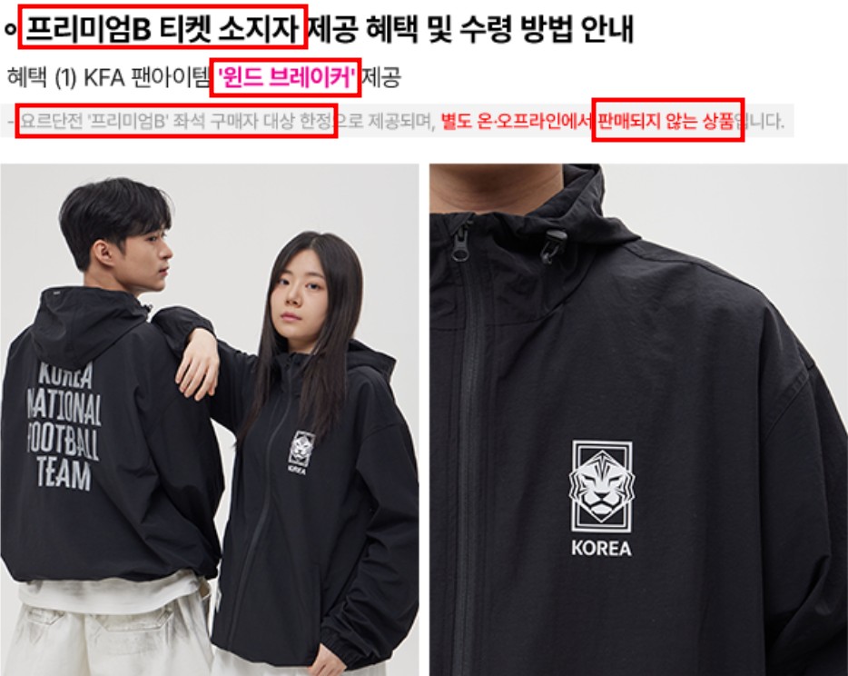 - 티켓 1매당 국가대표팀 레플리카 1벌 제공