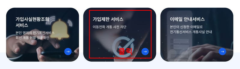 - ‘명의도용 방지 서비스’ 메뉴 클릭