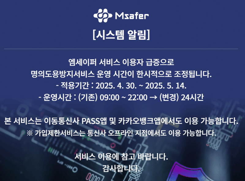👉 https://www.msafer.or.kr에 접속해서 사용해야 합니다.