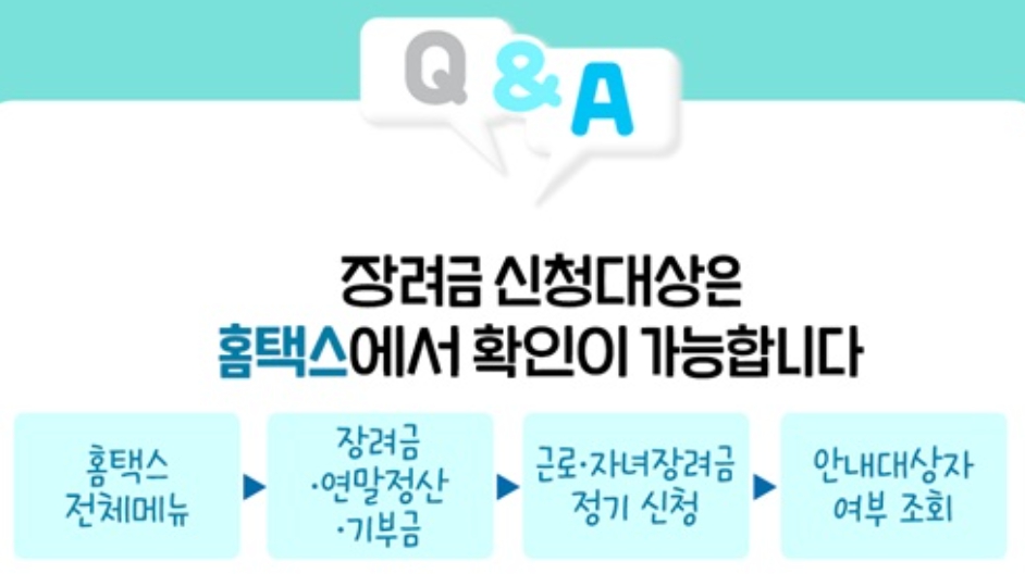 - 홈택스: 로그인 → 근로장려금 신청 메뉴