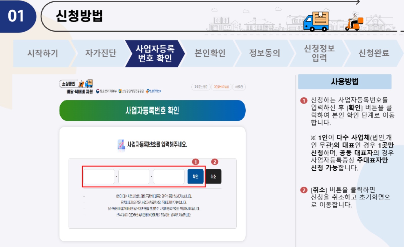 네 번째, 사업자등록번호를 적은 후 확인을 클릭하세요.